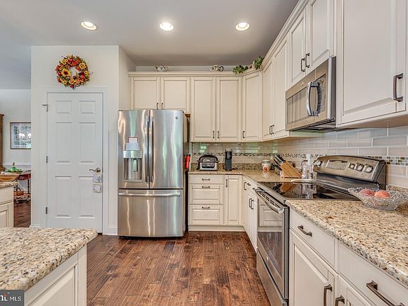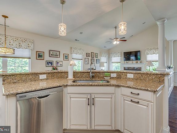 Wonderful Castell Model with Sunroom and Upgrades Throughout. This beautifully appointed Castell model offers the perfect blend of comfort, elegance, and function. Step into a welcoming front foyer with tray ceiling and hardwood floors that flow seamlessly throughout the main living areas. The gourmet kitchen features off-white cabinetry, granite countertops, a center island, and opens to the vaulted-ceiling family room with a cozy gas fireplace—ideal for entertaining or relaxing evenings at home. A sun-drenched breakfast area overlooks the paver patio, while the bright sunroom with tile flooring offers additional living space and opens directly to the backyard—perfect for enjoying indoor-outdoor living. The formal dining room, enhanced by a charming bow window and partial wall for an open yet defined space, sits just off the main living area. The private office, located at the front of the home, enjoys views of the landscaped yard. The primary suite offers two closets and a spacious en-suite bath, while a comfortable hall second bedroom is served by a nearby full hall bath. Upstairs, you'll find a large storage room, HVAC access, and a tankless water heater for efficiency and convenience. Carpeted bedrooms, hardwood floors, abundant natural light, and thoughtful finishes make this home move-in ready. The seller is looking for a mid August closing.