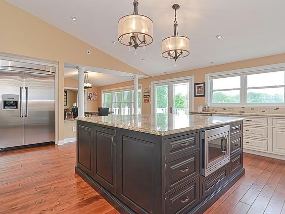 One-of-a-kind WATERFRONT property on Sharons Lake Massapoag! Wall of windows overlook the lake from the chef's kitchen featuring soaring ceilings, designer lighting, custom cabinetry, granite counters, walk-in pantry, 12 breakfast bar & grand island. Thermador SS appliances incl induction cooktop, double wall oven & 48 built-in refrigerator. Kitchen opens to large family room w/ gas fireplace and dining & living rooms w/ water views. Master suite boasts lake views, 18x10 walk-in closet, private balcony and spa-like bath w/ soaking tub, oversized shower, towel warmer, & custom tile. Two more good-sized bedrooms, updated full & half baths & laundry on the main level. Walkout lower level includes huge office, cozy den, & large recreation room with views of lake. Lower level also has bonus room, half bath & second laundry. Step down from the deck to spacious back yard, private beach and lake. Enjoy swimming, boating, kayakingNot just a homeIts a LIFESTYLE.