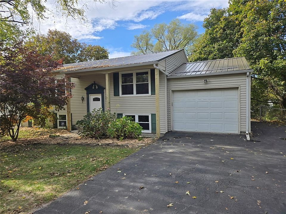 Remodelled center split raised ranch home convienently located in the Village of Victor, 4 bedrooms 2 full baths, family room, hardwood floors thru out first floor 3 bedrooms and 1 full bath up, 1 large bedroom, full bath down, family room and laundry. Walk out staircase to attached 1 car garage. New metal roof, a/c unit, thermopane vinyl windows, freshly sealed blacktop driveway, new carpet in lower level vinyl and laminate floor in kitchen, freshly painted interior. Fully fenced rear yard with playset and terraced gardens for all your flowers and vegtables. Concrete patio off rear of home. Kitchen complete with refrigerator, new electric range, garbage disposal and dishwasher. Owners are agents. Delayed showings until Thursday 10/23 at 9am and delayed negotiations until Sunday 10/26 at 5:00 pm.