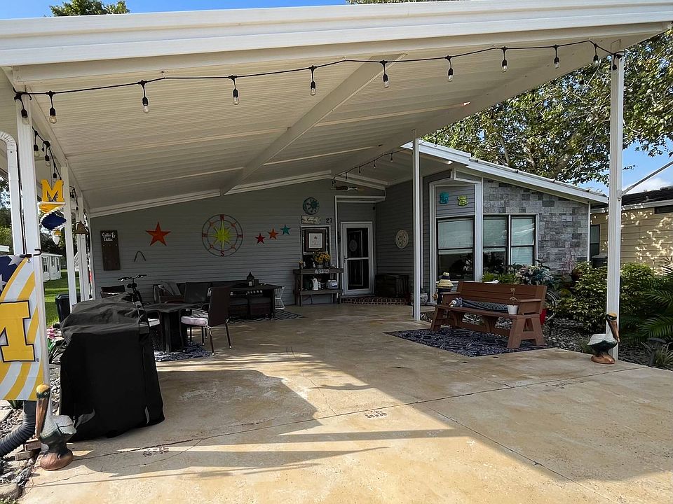 This beautifully updated 2 bedroom, 2 bath Palm Harbor home in the desirable Bear Creek community offers over 1,800 sq. ft. of living space with every comfort in mind. Step inside to find an oversized living room featuring a fireplace, skylights, and new plank flooring. The kitchen boasts stainless steel appliances and resin countertops, opening seamlessly to the dining area and covered porch which is perfect for entertaining. Both bedrooms and baths are generously sized, and the home also includes a patio area, oversized carport with side-by-side parking for up to four vehicles, and a negotiable golf cart. Bear Creek is an active, friendly senior community with a true resort feel. Residents enjoy walking paths, three clubhouses, multiple recreation areas, and fishing ponds on-site. Family is always welcome, and the beach is just minutes away for when you want to sink your toes in the sand. A nearby marina makes it easy to enjoy all your water toys. This home and community must be seen to be appreciated. If Florida resort-style living is what you've been searching for, don't miss this affordable opportunity!