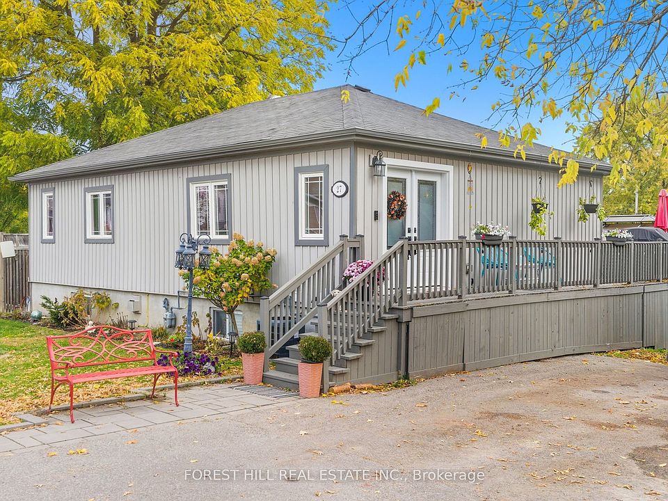 Welcome to 27 Marina Drive - a beautifully updated bungalow nestled in the sought-after lakeside community of Caesarea and just steps from Lake Scugog, known for it's sandy bottom beaches. This charming designer finished 2-bedroom, 2-bath home is light filled and offers an inviting open-concept layout. The stately Living/dining room is spacious and has 3 large picture windows. The main floor has hardwood and engineered hardwood through-out. The primary bedroom has garden doors to walk out to a private deck with lake and marina views and a luxurious 4 piece bath. A modern kitchen with granite countertops, white custom cabinetry, subway tile backsplash and a coffee bar. Walkout to the fully fenced back yard oasis with a spacious deck, a covered gazebo and lots of garden space - perfect for entertaining or relaxing outdoors. The finished lower level boasts a cozy gas Napoleon fireplace, pot lights, and a full modern bath, offering flexibility for a potential third bedroom or recreation space. Enjoy the serenity of lakeside living while being close to parks, trails, and all local amenities where you can play basketball, beach volleyball, enjoy the playground and skate park in the park right across the street. Boat, swim and fish and only ten minutes to amenities and restaurants in beautiful Port Perry. Imagine the possibilities.