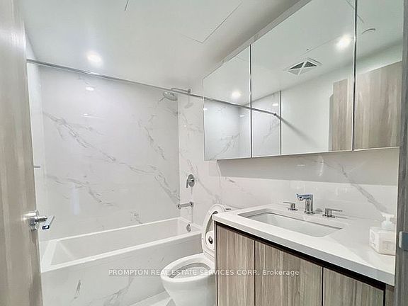Experience refined living at the prestigious Saisons Condo in Concord Park Place, featuring a functional 1 Bedroom + Den layout with an expansive 163 sq. ft. balcony. Designed with soaring 9 ceilings, floor-to-ceiling windows, premium laminate flooring, quartz countertops, and built-in Miele appliances, this residence combines style and comfort. Residents enjoy world-class amenities including a touchless car wash, EV charging stations, visitor parking, and an 80,000 sq. ft. Mega Club with tennis and basketball courts, swimming pool, sauna, and a grand ballroom. Ideally located within walking distance to Bessarion and Leslie subway stations, Oriole GO, and IKEA, with quick access to Highways 401/404, Bayview Village, and Fairview Mall. One parking and One locker included.