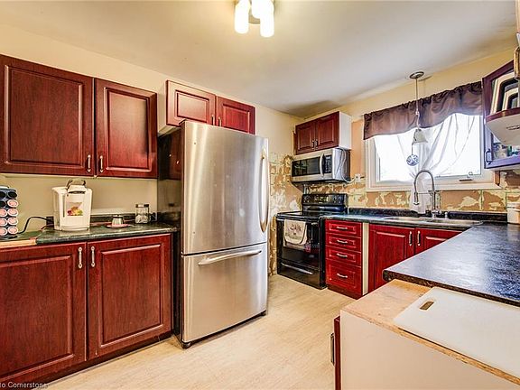 Bring your ideas! Attention renovators or those not afraid of cosmetic TLC to make this home their own. This home needs some work but is located on a fantastic family friendly street. This semi features 3-bedrooms and 2-bathrooms. Located in the quiet and family-friendly Forest Heights neighborhood of Kitchener. Perfectly situated close to shopping, parks, schools, and highway access, this home offers both opportunity and convenience. The spacious kitchen features ample cabinetry for all your storage needs and flows seamlessly into the dining area—ideal for entertaining or everyday family meals. The dining room opens to a cozy living room with direct access to a covered deck, perfect for relaxing or hosting guests. Step outside to a fully fenced backyard complete with a shed for additional outdoor storage. Upstairs, you'll find all three well-sized bedrooms and a 4-piece bathroom. The partially finished basement adds extra living space with a rec room, a 2-piece bathroom, and laundry area—offering great potential for future customization. Don't miss your chance to own this well-maintained home in one of Kitchener’s most desirable communities!
