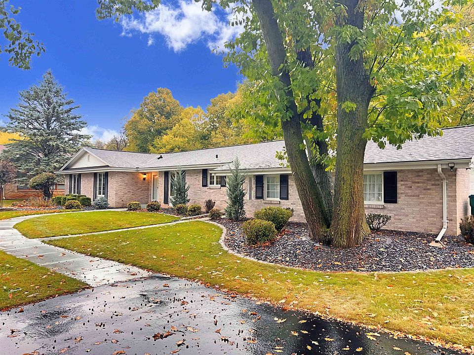 Stunning all brick ranch sits on a beautiful 1.17 acre wooded private lot! You will be greeted by the lovely double door entry way that welcomes you. Kitchen & dining area features wood flooring, quartz counter tops & peninsula. Kitchen appliances stay +washer & dryer. Spacious living room. First floor office/den. Cozy family room features gas fireplace, book shelves & patio door that leads to your patio. Enjoy viewing all the wildlife from the large windows. Primary bedroom has a private bath plus 2 other nice sized bedrooms & another full bath. Lots of updates. All this plus heated garage, full house generator, central air, convenient first floor laundry, shed & much more. Don't miss incredible property Welcome Home!
