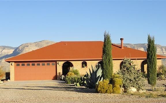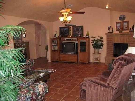 Country Estate! Amazing views in every direction-great home for your family Tile flooring throughout for easy maintenance, large master bedroom with large sit down tile shower.Grand kitchen with oak cabinets, flat cooktop range, breakfast bar reverse Osmosis, pantry, recess lighting & tile backsplash,The large dining area with door leading to the covered patio.Living room has vaulted ceilings with beautiful fireplace.Laundry room includes build in sink and storage. Easy yard maintenance.