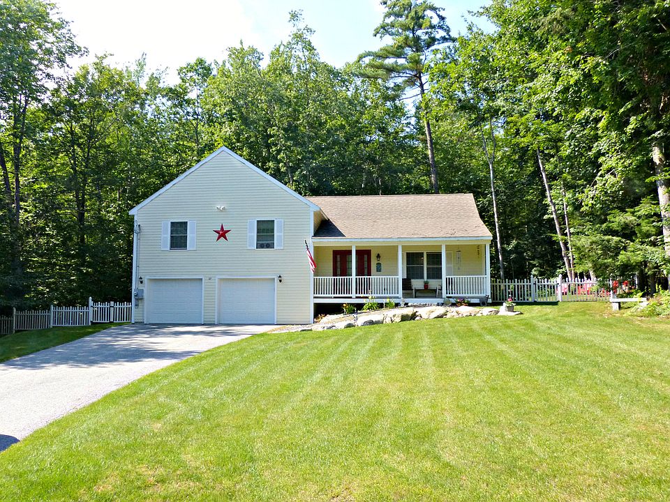 Lovingly cared for and better than new is this quality built home that's in move-in condition and ready for you! This spacious 1,736 SF home has an inviting farmer porch in front, a spacious living room with a gas fireplace, a formal dining room or office; a great kitchen with solid surface counters, maple cabinets with ample storage, a center work island and a nicely wooded view through the sliders and onto the platform deck on the side of the house. There are three VERY generous bedrooms with tremendous closet space, two full baths, an over-sized garage AND a separate heated utility/bonus room (12 x 28'). There's plenty of storage space in the low post basement too. This home is set upon a level half acre lot with a thick green lawn and mature landscaping. The newly installed fenced in back yard is perfect for keeping pets safe and for privacy! It's truly the nicest lot in the entire sub-division! With over 46 acres of common land and only 17 home sites, it's a great neighborhood for walkers and wee bicyclists too! It abuts a 100 acre parcel with a horse farm and more trails to explore! Located ideally near States Landing beach on Lake Winnipesaukee and the Castle in the Clouds where there are miles of hiking trails! The snow mobile trails are so close. And for the duffers Ridgewood public golf course is 5 minutes away! What a perfect location to enjoy all four seasons in the lakes region! Vacation, retire, or work - primary or secondary - this home fits the bill!