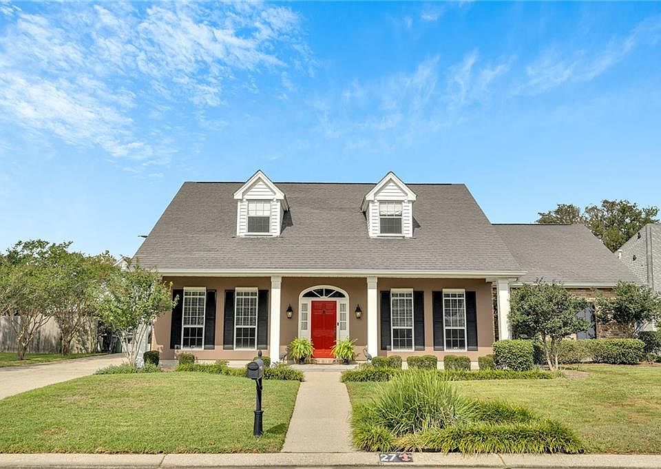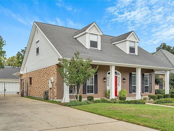 Sitting on an expansive oversized lot this Acadian-style home offers a timeless charm, elegance and traditional appeal of Southern architecture. The wide front porch with columns is perfect for adding rocking chairs and potted plants, making it inviting for guests and family alike. The main living space is anchored by a fireplace that serves as a gathering point, offering both style and comfort. The large spacious kitchen is a true chef’s dream, with granite countertops, plenty of cabinets & counter space. The elegant formal dining room is ideal for holiday gatherings. The primary bedroom is conveniently located on the 1st floor. The primary bath boasts double vanities w/separate shower & tub along with a large walk in closet. The oversized lot enhances the property’s appeal, offering ample space for gardens & recreational areas. The backyard is a peaceful haven, perfect for BBQ's & crawfish boils or enjoying quiet moments surrounded by nature. The large detached garage allows for a plenty of space for storage. With its unique combination of elegance, space, and sophisticated Southern appeal, this Acadian-style gem promises a lifestyle of comfort and grace. Be sure to copy & paste this link to view 3D tour of entire house https://my.matterport.com/show/?m=UxkVacJ3G3N&brand=0