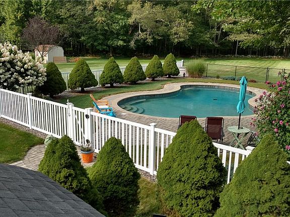 One owner Contemporary Raised Ranch with Cathedral Ceilings & Open Floor Plan. 15 X 19 Sun Room Addition Open to Kitchen with Breakfast Bar. Corian Counters in Kitchen with Glass Tile Back Splash, Pantry has Pull Out Drawers, Bathrooms Remodeled with Granite Tops, Tile Floors & New Fixtures, Crown Moldings in LL Family Room with Fireplace Xtrodinare Gas Fireplace, opens to 15x19 Covered Porch! Landmark Custom Designed Gunite Pool with Benches & Self Cleaning Robot. 1.6 Acres backing to Woods on a Cul de Sac street! House has leaf Guard Gutter System & Generator Connection. Owner/Agent.