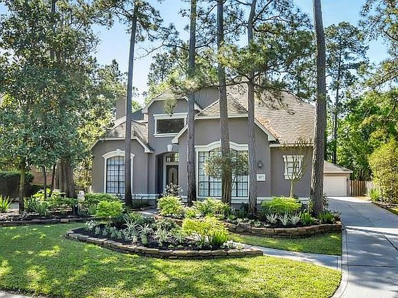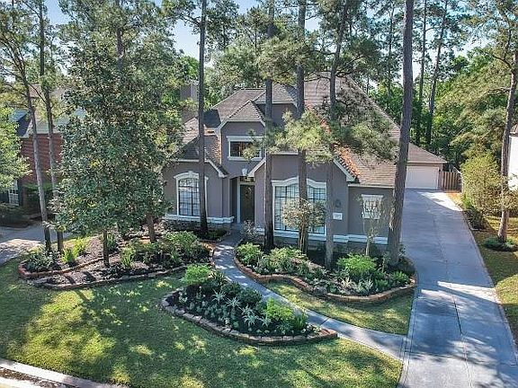 Welcome Home to this stunning LifeForms home in Cochran's Crossing! This 4 bedroom home features an open floor plan with formal living and dining room, private study, and spacious kitchen open to the family room. The kitchen offers stainless steel appliances, granite counters, induction stove top, convection microwave oven with full oven, warming oven, beverage refrigerator, and lots of storage that opens to the breakfast room with access to the lavishly updated outdoor garden. The luxurious Master Suite offers exquisitely updated en-suite bath with frameless shower enclosure, a soaking tub, two sinks and a vanity, and an updated closet with built-ins! Just upstairs are three bedrooms, game room, plenty of storage, and full baths, including updated 3rd bedroom en-suite bath. Soaring ceilings, columns, and luxury bathroom updates are featured in this home. You can't miss this masterpiece nestled in the heart of The Woodlands with close proximity to parks and acclaimed schools!