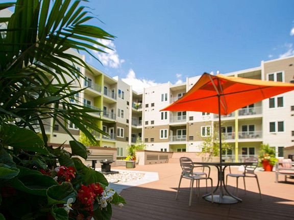 - Exterior features: 24/7 urgent maintenance, Barbecue, Bike & Personal Storage, Business Center, Coffee Bar, Common Area WiFi, Concierge, Energy-Saving LED Lighting Throughout, Free Weights, Game Room, Glass Subway Tile Backsplash, Glass Top Ranges, Linen Closets in Select Units, Night Patrol, On-Site Maintenance, On-Site Management, Open Gourmet Kitchens, Package Receiving, Pet Friendly, Quartz Countertops, Rooftop Deck, Soft-Close Drawers, Stall Showers in Select Units, TV Lounge
