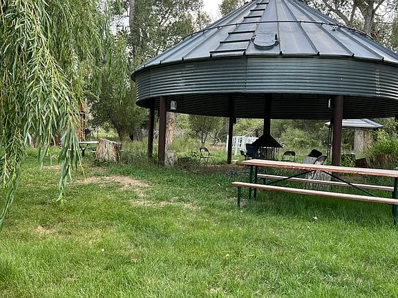 The riverside gazebo with fire pit, water frontage and three full-service RV hookups (one under a premium covered bay 40' x 40' with 11'3" clearance) create a one-of-a-kind setting for relaxation or hosting retreats and special events.