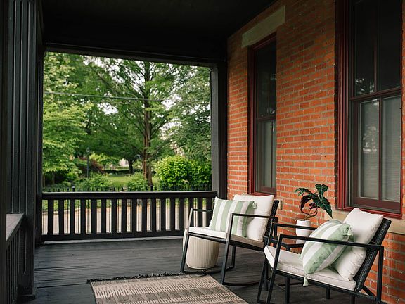 Pitch perfect reimagining of this historic estate in King-Lincoln Bronzeville. Skillful aesthetic fusion blends the charm of an NYC Brownstone with the modern, airy feel of California. First floor revolves around a beautiful custom kitchen concept and features 10+ foot ceilings, large rooms with abundant natural light, exposed brick, and rear staircase. Comfortable den with views of rear garden, powder room, and mud area off south entry. 4 bedrooms up, including a gorgeous primary suite with spa bath. 3 additional bedrooms, a 2nd renovated full bath, and upstairs laundry. Fenced rear garden with green space, sun deck, and crushed stone. Garage/Carriage house is a ready canvas to customize as a studio, office, or guest space. Close to CMH, Franklin Park Conservatory, and downtown Columbus.