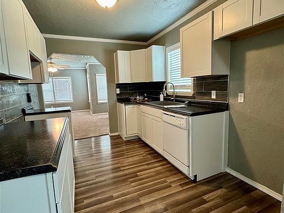 This remodeled three-bedroom, one-bathroom, and one-car garage home in desirable Tomlinson Addition is ready for its new owners. Upon entry you walk into a spacious living room with a neutral scheme to include paint and flooring. The kitchen has been updated to with newer modern white cabinets and a gorgeous dark grey tile backsplash. The dining area and laundry room are just off of the kitchen for your convivence. The bathroom has also been updated and boast space with a large linen closet. The Central Heat and Air and Roof were replaced 4 years ago. The exterior siding was also replaced two years ago. Feel safe with the Oklahoma weather. This home has a storm cellar. Call today to schedule a tour of this beautiful home.