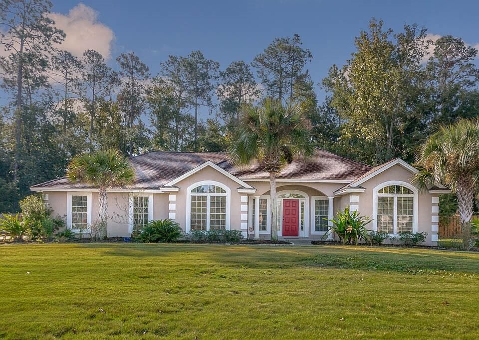 Great four bedroom home located in Eagle Crest subdivision off of Harry Driggers Boulevard. This home features a large living room with fireplace, formal dining, kitchen with granite countertops and breakfast bar, eat in kitchen area, & split bedroom layout. The backyard is completely fenced in and has a screened in porch, two wood deck areas, and a saltwater pool with fountain. It is ideal for entertaining! The home is situated in front of one of the beautiful lakes in the neighborhood offering even more privacy with no neighbors across the street!