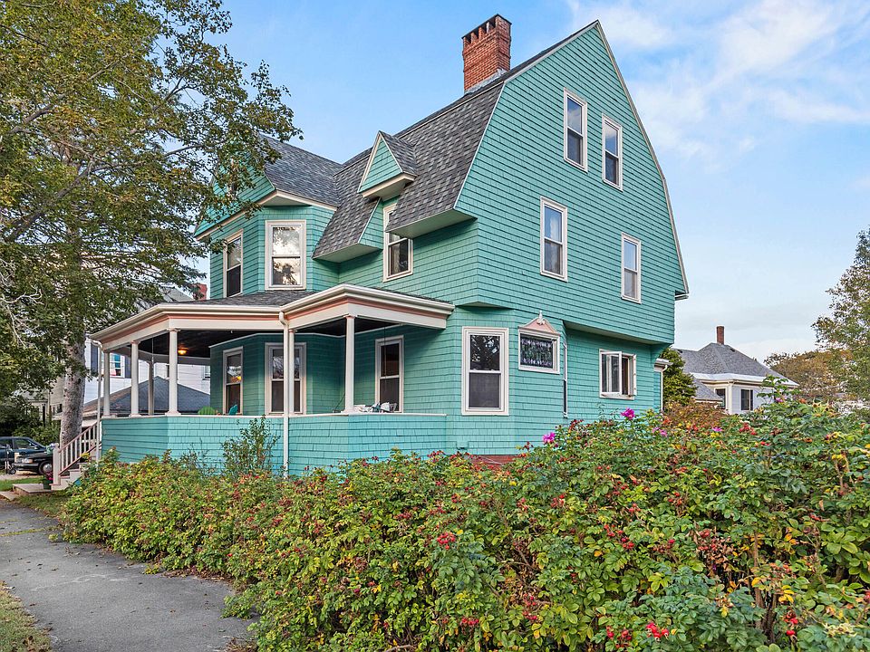 Nestled in the vibrant Woodfords/Deering Center neighborhood of Portland, where tree-lined streets meet the pulse of local cafés and boutiques, this home's iconic turquoise shingle siding gleams under the Maine sky, crowned by a steep gabled roof and accented with crisp white trim that pops like sea foam against the blue. A grand wraparound front porch beckons with its classic columns, perfect for morning coffee or evening unwinding with neighborhood views.