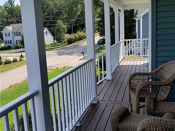 A farmer's porch frames this handsome young colonial on a well groomed lot. Recent paint, stain and driveway coating. Flowing hardwood stairs and floors throughout open floor plan. Master bedroom with private bathroom and walk in closet. Bedrooms have large closets with an abundance of space. Open concept kitchen with stainless appliances and expansive granite counters. First floor laundry, crown moldings, pantry closet and bonus storage loft in large 2 car garage. There is also a finished lower for a theater, play area, home office or whatever else you can think of, while still having additional area for storage. Central air conditioning security system and a sprinkler system round out the amenities. Quiet area, but close to highway and all conveniences. Nothing to do but move in!
