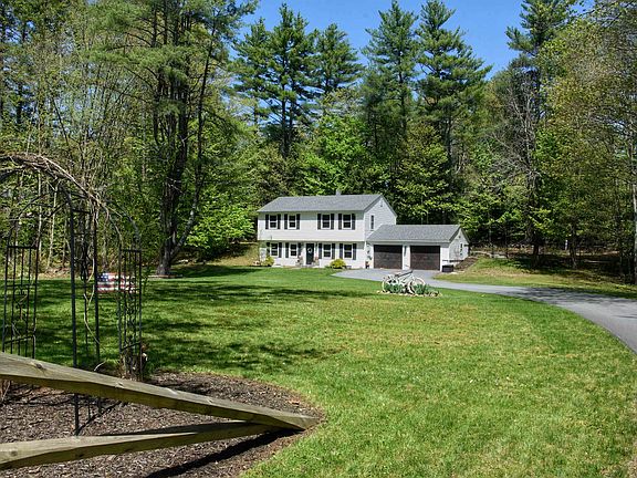 Enjoy Country Living in this 3 bedroom, 2 bath Garrison style home - built from lumber milled from this very property! The 1st floor features the primary bedroom with ensuite bath, dual vanities and walk-in closet! This level also offers a beautiful space for a home office, playroom or den - which can be accessed from both the front door or the direct entry 2-car garage! Upstairs will envelop you with it's warm tones and decor. The farmer's sink will just steal your heart, set amidst a suite of SS appliances in this spacious kitchen. The kitchen is open to the dining/living room, which makes spending time with friends & family a delight. New flooring flows seamlessly throughout this level - making this home a breeze to maintain - so you can spend more time outside! Expanded decks, a paver patio, a play area and an oversized, fenced-in pet paradise await you here! The expansive front yard is a serene and private escape, surrounded by mature trees. Don't miss this opportunity to make this home your own.