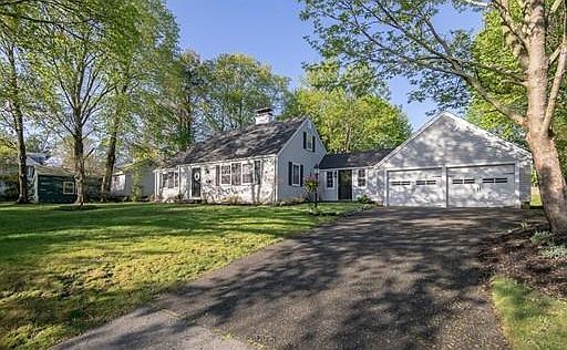 This well cared for Royal Barry Wills cape is the classic New England home with all the modern updates you would want. An open floor plan that is great for entertaining inside and out. Set on a private half acre lot there are two deck areas easily accessed by sliders in the large entry/mudroom or the dining room. There are hardwood floors throughout, beautiful wood burning fireplace in the living room and central air too. The kitchen, open to the dining room, is gorgeous with stainless appliances, farmers sink, Quartz counters and a central island with wine fridge. Flexible floor plan with 2 bedrooms and a full bath on the first floor as well as three bedrooms upstairs. Perfectly located near shopping and the train station for an easy commute to Boston. Come take a look! Showings Start Saturday 1-2:30 and Sunday 1-2:30.