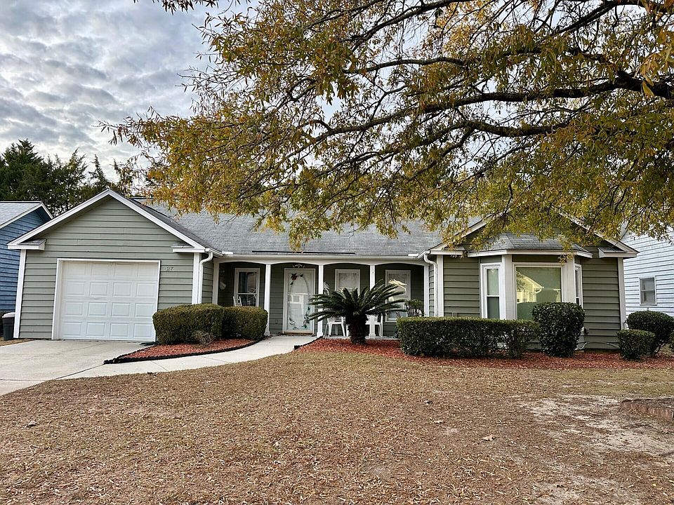 This 2 bedroom ranch style home is ready for you to move right in. You will appreciate the 2 large bedrooms. One with a private bathroom and large walk in closet. There's a large living room/dining room with access to a nice private patio out back. A cozy sunroom could be a nice TV or reading room. It also has access to the private fence in patio. There's an eat in kitchen with lots of counters and cabinets and all kitchen appliances with stay. The laundry room has a deep sink and all this plus a single car garage. Bradford Village is a small gated community for 55+ adults with great amenties including a community pool, tennis court, a clubhouse w/ social events, and boat storage. You'll live just minutes from Lake Marion, Santee State Park, restaurants and shopping.