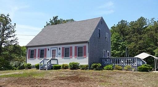Classic Country Cape, 3 bedrooms, 1-1/2 baths, set on level corner lot, walk to private sandy beach at fully recreational Big Sandy Pond, Well maintained gently used home in family friendly West Wind Shores neighborhood. Relax on your deck or picnic under cabana. Outside shower and storage shed. Many updates, Title 5 in hand. Easy to show.