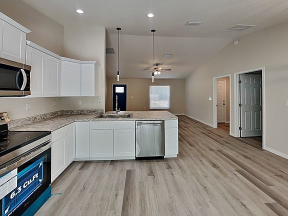 Discover your dream home in beautiful Ocala! This stunning residence features a spacious family room illuminated by natural light and adorned with easy-to-maintain vinyl flooring. The kitchen is a chef's delight, equipped with sleek stainless steel appliances and a cozy breakfast nook, perfect for morning gatherings. The generously-sized master bedroom offers a luxurious escape, complete with a large walk-in closet and a private bath featuring a stylish stand-up shower. Additional highlights include a convenient laundry room, a two-car garage, and an expansive backyard, ideal for outdoor activities and entertaining. Don't miss your chance to make this elegant home your own!