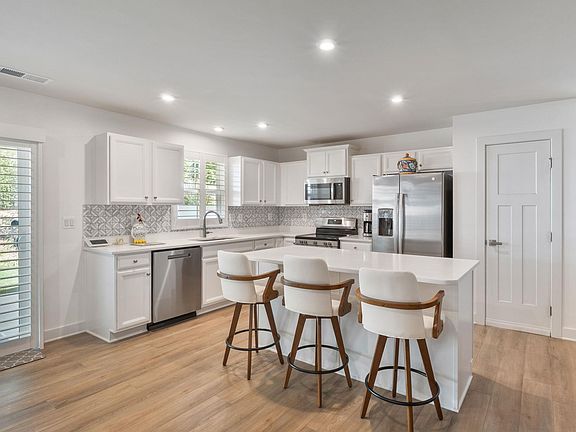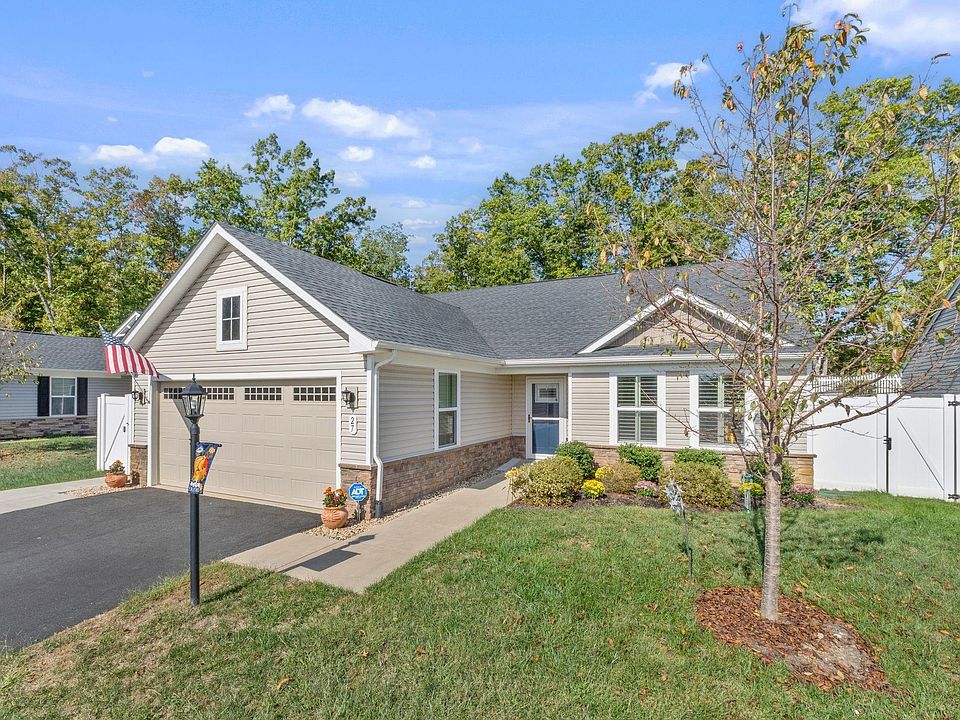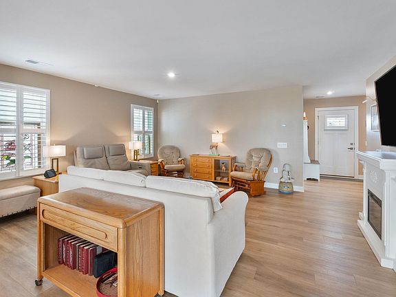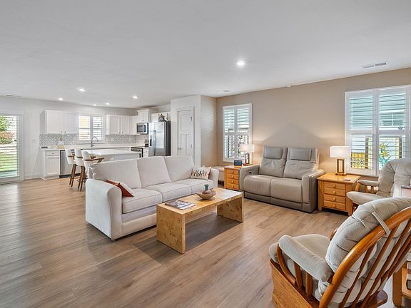 Better than new! Built in 2021, this 3-bedroom, 2-bath home offers the ease of single-level living with thoughtful upgrades throughout. The open, light-filled layout feels fresh and inviting, while the design includes features that make daily life more comfortable for everyone: zero-entry front door, wide doorways, low light switches, grab bars in all bathrooms, and comfort-height toilets. Even the garage and back patio have additional half steps for easy access. Every window has been outfitted with plantation shutters, adding both style and function. The backyard is a true retreat: fully fenced and extensively landscaped, with plenty of space for relaxing, gardening, or entertaining. The concrete patio spans the full width of the home, and 4-foot ADA-accessible walkways surround the house. This premium lot offers privacy with no neighboring homes behind, just walking trails! As a bonus, the garage includes its own mini-split heating and cooling system, perfect for hobbies, workouts, or simply keeping you comfortable year-round. With modern finishes, accessibility in mind, and upgrades already in place, this home is move-in ready and built to be enjoyed.
