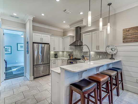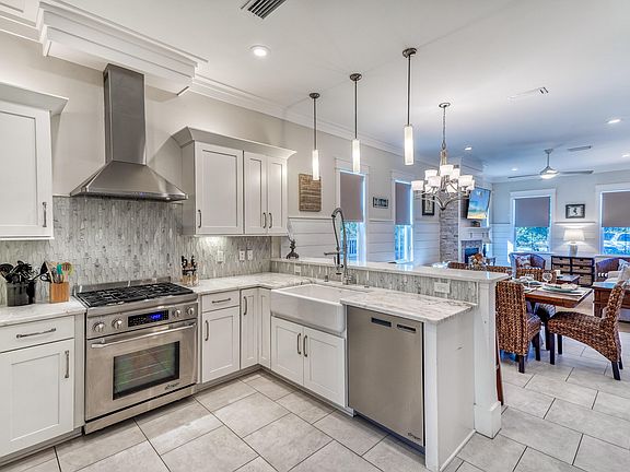 Sol Serenity is a classic Florida beach house with breathtaking Gulf views from the 2nd and 3rd floor. The 1st floor features a large open floor plan with a living room with fireplace and combined kitchen and dining areas. The kitchen features stainless steel appliances with glass tile backsplash and marbled white countertops.There is a spacious guest bedroom off of the kitchen with a king bed and a full bath. On the 2nd floor you will find the master bedroom with a private balcony overlooking the community pool with Gulf views. The master bath features dual vanities, a soaking tub and separate shower. Down the hall is another guest bedroom with en suite bathroom. On the 3rd floor you will find a bunk room with 4 twin beds and private bathroom. 2021-04-12