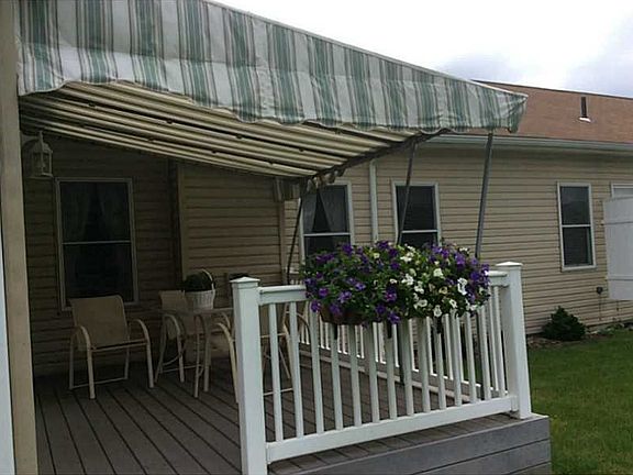 This beautiful and tastefully decorated condo showcases CUSTOM FEATURES including Shaker Style Kitchen Cabinetry/Corian Counters - Spacious Cooking and Dining Area, Extra Large Sunroom /Den w/Door to extra large private deck w/custom awning. Vaulted living room w/ Gas FP, Formal DR, and Master w/ ensuite. 2nd BR and 2nd full Bath. Convenient 1st floor laundry w/ additional cabinets PLUS full Basement.