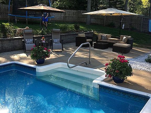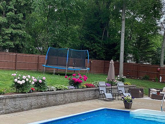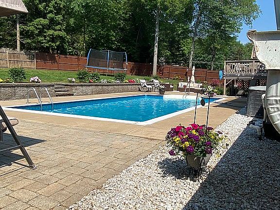 Lots of room for entertaining, family room with wet bar, in-ground pool, large patio for grilling, deck, sliding doors on both levels, central air, retaining wall with flower beds, fenced in yard. Separate laundry room.