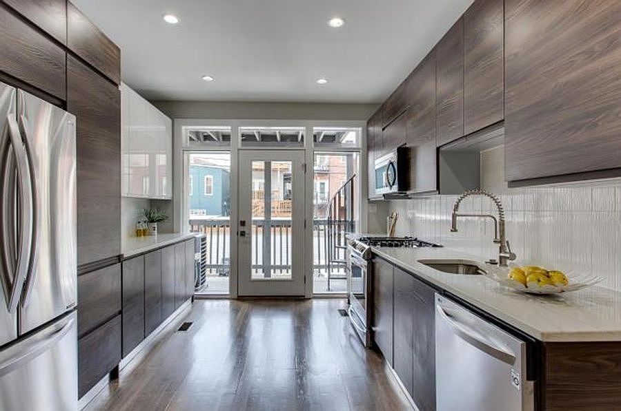 This 2 bed, 2.5 bath rowhouse features an open first-floor plan outfitted with fine hardwood flooring, high ceilings, tall and bright front-facing floor to ceiling windows, and solar panels that cover 100% of the electricity bill. The gourmet kitchen comes complete with shiny white countertops, tile backsplash, stainless steel appliances, 5-burner gas range, microwave, double-door refrigerator, hardwood cabinetry, designer lighting. The first floor is rounded out by a conveniently located half-bath, and secondary exit leading out back to a small deck and a secure parking space.