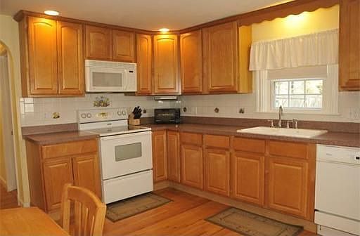 Move right in to this Well Maintained Colonial in a great neighborhood and located directly across the street from the elementary school. This home boasts an updated oak eat in kitchen, formal dining room with hardwood floors, front to back living room with berber carpet & slider to maintenance free deck overlooking fenced yard, 2 full updated baths, finished lower level family rm w/ gas stove, 2nd floor laundry, neutral decor, 6 panel doors & many updates including windows, vinyl siding, water htr, storage shed & more.