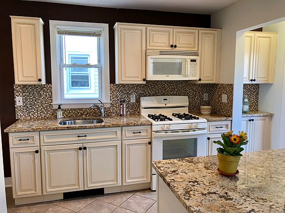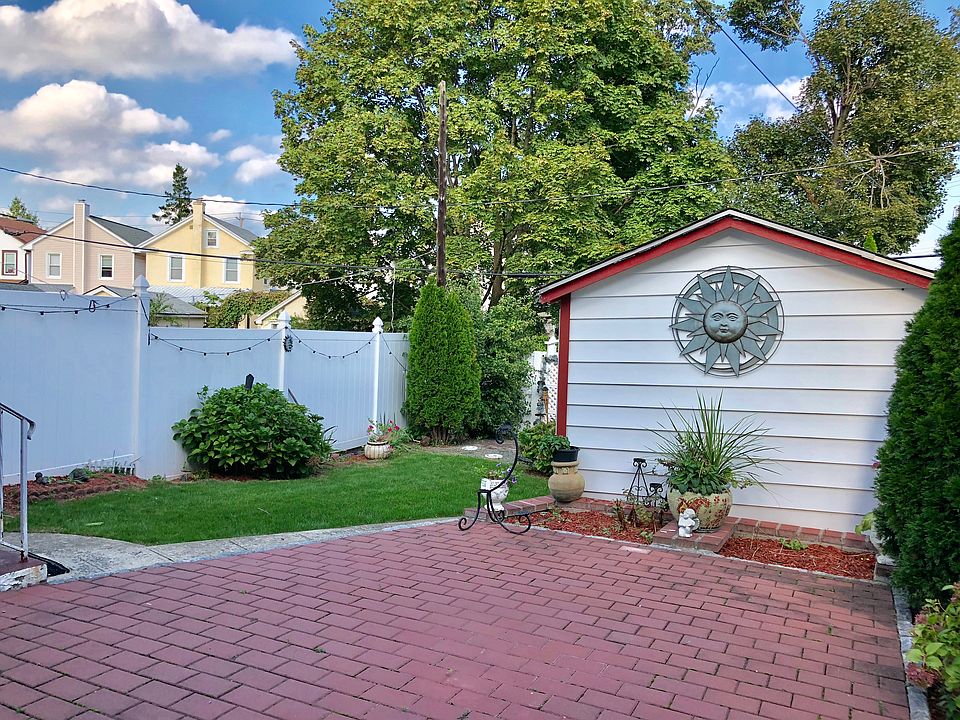 You will fall in love with this updated, sun-filled, move in ready home. First floor features hardwood floors, a wood burning fireplace, stained glass windows, crown molding, built-in shelving and custom china cabinets, a warm and inviting sunroom, and an updated eat-in kitchen with breakfast bar and granite counters. On the second floor you will find the master bedroom with two closets for great storage and a generous sized second bedroom. Both rooms get tons of natural sunlight and have hardwood floors and crown molding. An updated hall bath rounds out the second floor of this charming home. Outside you will find a cozy retreat. Grill on your brick patio and enjoy the comfort of your fenced in yard with plentiful areas for gardening. Here you will also find your detached garage. The lower level of the home features a full basement with laundry and high ceilings. All this in a great walkable neighborhood, close to shopping, restaurants, parks and the train for a quick commute to NYC!