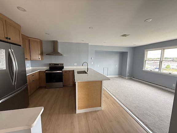 Completely renovated 1 Bedroom Apartment with stunning views and walking distance to downtown Damariscotta. This brand new apartment has stainless steel appliances, high grade cabinets and quartz countertops. The spacious 1 bedroom has a bonus room which can be used as a personal office or craft room. This apartment has baseboard heat and central AC and comes with one dedicated offstreet parking spot. This apartment is located on the second floor but does have elevator access at the main entrance lobby. Price includes all utilities except WiFi and trash removal.