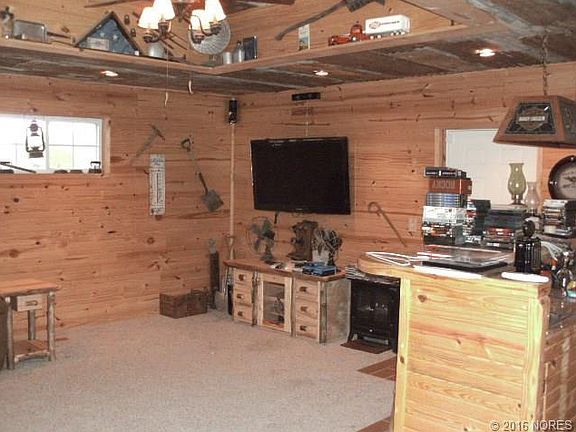 storage bldg does not stay. Nice home with a rustic flair. Garage converted into a large den with a wet bar. Original house has hardwood floors some with carpet over wood. 40'x60' garage/shop with starting of liv qrtrs, circle drive, storm shelter.