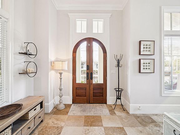 Welcome to the gated beachfront Neighborhood of Caribe where you are invited to discover 27 Rue Martine, with open floor featuring 4 bedrooms and 3.5 baths of which one bedroom and a bath are tucked away in the courtyard Guest House. As you enter the well-conceived interior space through the double mahogany doors of the living room with fireplace you are immediately drawn through the home, past the staircase with 23 foot ceiling height, beyond the formal dining room, and kitchen and dining/sitting area to the tall French doors inviting you to the courtyard. 27 Rue Martine is differentiated by the home's natural light, numerous tall windows accentuated by transoms, high ceilings, travertine flooring, crown molding on the first floor and Primary Bedroom En-Suite, French doors, large bright and airy well-appointed kitchen, walk-in pantry, built in customized niches, quality hard surface flooring, oversized laundry room, large guest bath, and thoughtfully designed interiors letting on to the wrap around porch with fireplace, guest house and the spacious courtyard. The driveway can accommodate four vehicles. The primary bedroom features two closets, private bath with linen closet, separate glass shower which adjoins the vanity, a soaking tub and water closet. The kitchen features ample countertop space, Viking slide in gas range with 6 burners and griddle for gourmet cooking, windows over the sink and next to the range and walk in pantry. The kitchen marries the informal dining room which may also be furnished and enjoyed as a sitting area. Whether you wish to entertain indoors, outdoors, formally or informally, you and your guests will enjoy gracious Caribbean Style living among the beauty of Caribe. Caribe is a picturesque beach neighborhood tucked away on an uncrowded stretch of beach in Miramar Beach is always beautiful, never crowded as rentals are limited to a minimum of one week and a maximum of 8 person occupancy. Owners enjoy tennis/pickleball court, two gleaming swimming pools with bath houses, lake pavilion with bath house, two beach walkovers and professional beach service, beautiful beaches, sidewalks for strolling throughout the neighborhood, courtesy patrol, gated entry with soft evening lighting and beautiful streetscape. Live and play minutes from the area's finest golfing, tennis, dining and shopping. Explore nearby Silver Sands Premium Designer Outlet, Grand Boulevard, Market Shops at Sandestin and AMC Classic Boulevard 10. On Saturday mornings after a walk on the beach, head to the Farmer's Market at Grand Boulevard for fresh fruits, vegetables and local honey, or breakfast at the Market Shops at Sandestin. We invite you to make an appointment today to discover 27 Rue Martine located in the picturesque Neighborhood of Caribe.