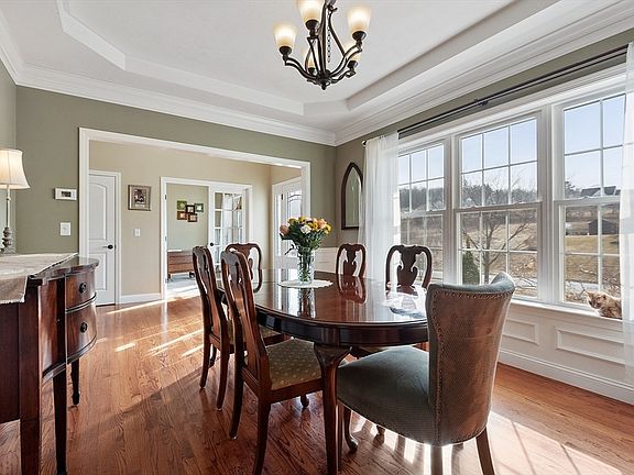 Previous buyers finances changed and house is now available again. Looking for something unique? One of a kind home design with Southern influence features striking roof lines, a dramatic sun filled great room and a first floor primary suite. The main floors also offers a spacious kitchen with large island and a glassed breakfast area overlooking the private backyard, a separate home office, a formal dining room with custom touches, laundry room and mudroom area with 1/2 bath. Upstairs you'll find a flexible floor plan with 3 bedrooms, a family bathroom, walk-in storage area, plus an additional familyroom great for kids! The lower level, with daylight windows, is roughed in for future added living space and the oversized composite deck with custom patio and firepit make for great outside entertaining. This New England gem is surrounded by scenic rolling hills and farm land and is just waiting to welcome it's next owners! Close by shopping, restaurants and easy highway access.