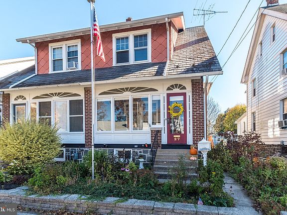 Nestled in the heart of Quakertown Borough, this delightful Brick Twin is surrounded by lush native plants and gardens that bloom throughout the seasons. A welcoming enclosed front porch opens into a warm living room featuring beautiful hardwood floors, flowing seamlessly into the dining room leading to the completely renovated kitchen. The kitchen is impressive with stylish gray granite counters, gray shaker-style soft-close cabinets, classic white subway tile backsplash, and stainless-steel appliances all come together for a contemporary yet timeless feel. Nearby, an archway leads to the main-floor laundry room, which also includes a full bathroom tucked behind a pocket door. Tile floors, a shower stall, and supplemental electric heating in both the laundry and bathroom make this layout convenient and efficient. Upstairs, three well-sized bedrooms await, each with hardwood flooring. The primary bedroom stands out with two generous closets with interior lighting. The upstairs bathroom has been beautifully remodeled with ceramic tile floors, subway tile walls, and a charming clawfoot tub preserving the historic charm of this house. The attic space is finished in rich Pumpkin Pine hardwood and a split-unit system already in place. This bonus area can be easily completed, offering possibilities for additional living space. The basement adds further utility with storage space, a utility sink, and all the major systems tucked away. Step outside from the deck into the private backyard oasis, full of colorful native gardens. A detached one-car garage with electricity completes the package. This home blends classic charm, thoughtful upgrades, and a year-round garden retreat, all within Quakertown Borough’s welcoming setting.