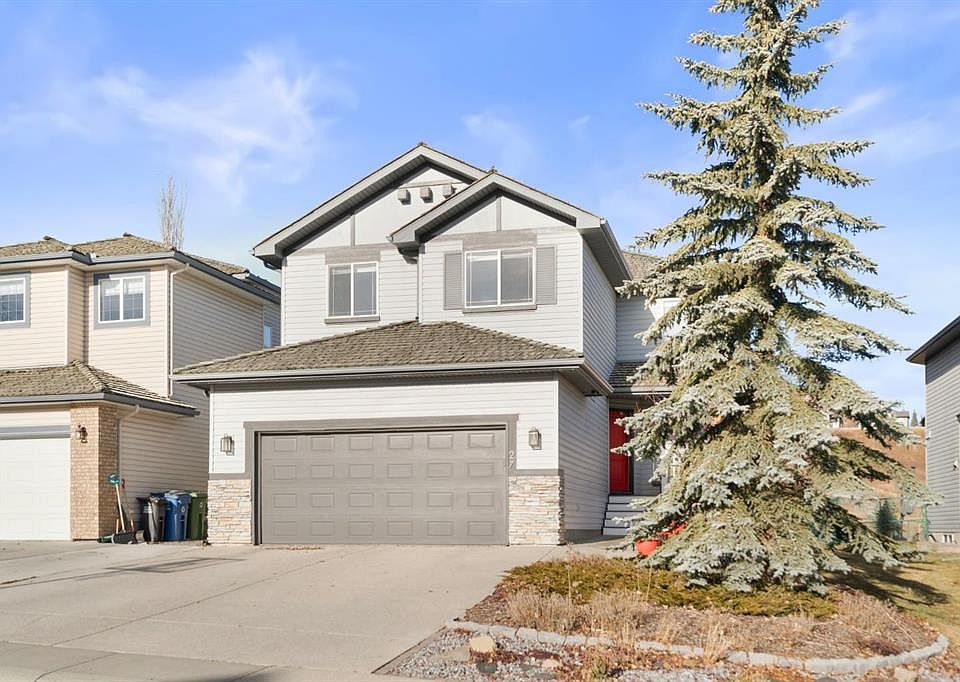 ***OPEN HOUSE THIS SATURDAY, NOVEMBER 22nd, FROM 12-3 PM*** Welcome to 27 Gleneagles Terrace, an inviting, beautifully updated home backing directly onto the rolling fairways of the GlenEagles Golf Course. Thoughtfully designed with sun-filled living spaces and charming character details throughout, this 2-storey offers over 2,800 sq ft of finished living space in one of Cochrane’s most sought-after communities. The main floor features a bright front office with custom built-ins, a welcoming foyer with a bold statement door, and a spacious living room with soaring ceilings, large windows, and a feature fireplace framed by stylish tile and built-ins. The refreshed kitchen is both functional and eye-catching, showcasing crisp white cabinetry, granite counters, a centre island with seating, stainless steel appliances, and a modern tile backsplash. The dining area enjoys peaceful views of the golf course and easy access to the deck. Upstairs, the primary suite overlooks the treed landscape and features a window bench, built-in shelving, a walk-in closet, and a serene 5-pc ensuite. Two additional bedrooms and a full bath complete the level. The fully developed basement is perfect for family living, offering a large recreation room with a sleek fireplace feature wall, media area, gym space, and ample storage. Step outside to your private backyard oasis, where mature trees create a natural buffer and the hot tub provides the perfect spot to relax while watching the wildlife pass by. This is truly a great settings in Glen Eagles, quiet, scenic, and connected to Cochrane’s extensive pathway system. Beautifully maintained and move-in ready, this home combines comfort, style, and an unbeatable location. Don’t miss your chance to live on the golf course in Glen Eagles!