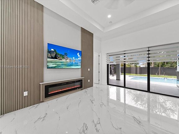 Modern tileCovered lanaiSaltwater poolOutdoor kitchenHigh ceilings