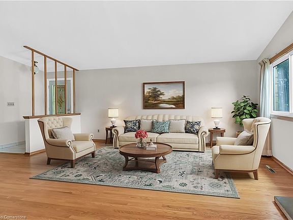 Welcome to this charming, well-maintained 3-level backsplit home on the West Hamilton Mountain, nestled just off Scenic Drive! Proudly owned by the original family since it was built in 1966, this solid residence offers timeless appeal and fantastic potential on a 46 x 100 ft lot. Step inside to soaring cathedral ceilings in the living and dining rooms, where a cozy wood-burning fireplace and original hardwood floors create a warm, inviting atmosphere. The eat-in kitchen provides ample space for everyday meals and family gatherings. Offering 3+1 bedrooms and 1.5 baths, there's room for growing families or those seeking flexible living arrangements. Separate side entrance off kitchen leads to the finished lower-level rec room. Perfect for relaxing or entertaining. The single carport adds convenient covered parking. Located in a quiet, established neighbourhood near parks, trails, schools, and amenities—this is a rare opportunity to own a lovingly cared-for home in a highly desirable area. Some photos are virtually staged.