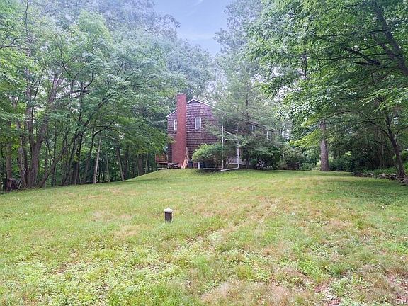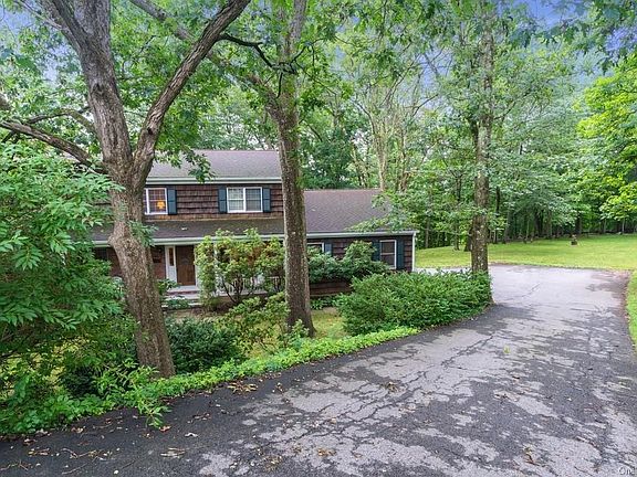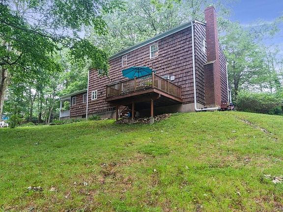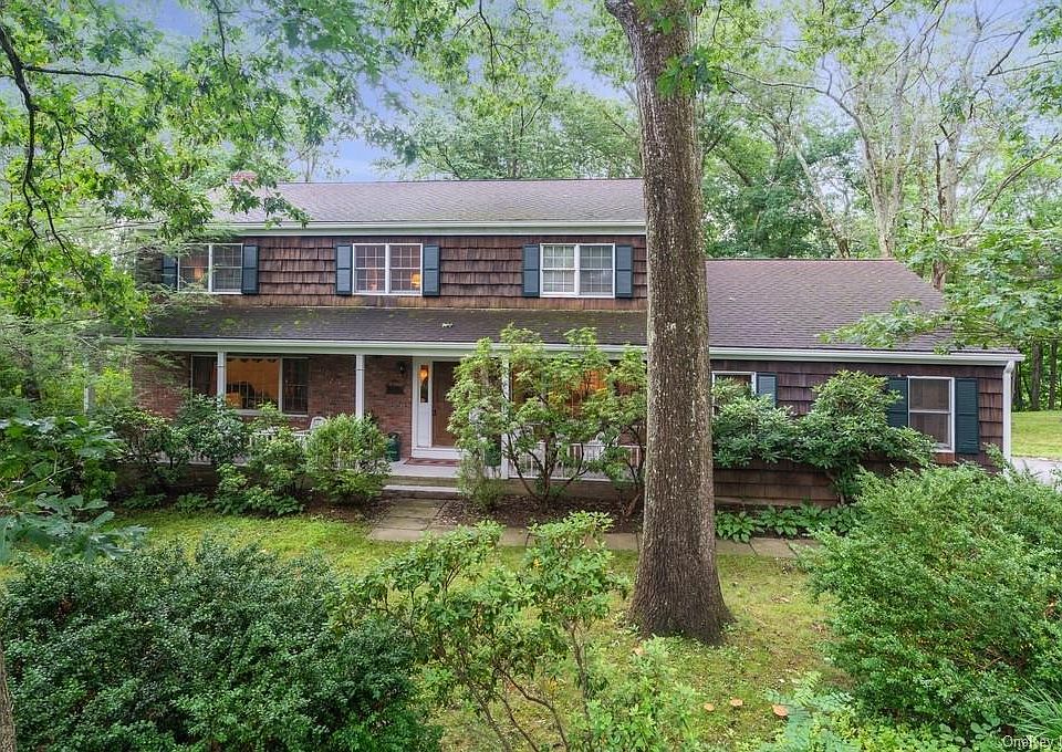 Beautiful and tranquil setting in well established Pound Ridge neighborhood. Traditional center hall colonial with covered front and side porch are ideal for relaxing with morning coffee or evening glass of wine. Deck for outdoor entertaining located off of the family room. Hardwood flooring throughout most of the home. Wood burning fireplace in family room. 4 spacious bedrooms all on second floor and basement is a blank slate ready for you to finish if you so desire. Expansive property provides room for a pool. Taxes listed do not reflect basic STAR deduction of $1,175.