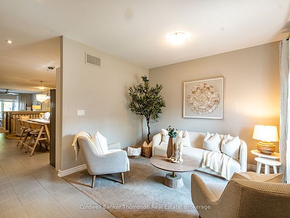 Welcome to this charming freehold bungalow townhouse, built in 2017 by the prestigious Devonleigh Homes and thoughtfully designed for comfortable living. With over 1,400 square feet of beautifully appointed space, this home invites you to relax from the moment you step onto the covered porch. At the front, a versatile sitting room doubles as an office or den, setting the tone for flexible living. Moving through the home, you'll find an open-concept kitchen, dining, and living area that's perfect for both everyday life and entertaining. The kitchen boasts a spacious island, while the generous living room opens to a private rear deck, complete with privacy louvres, offering the perfect outdoor retreat. The main floor continues to impress with a large primary suite featuring a walk-in closet and an upgraded 3-piece ensuite with a step-in shower. A convenient powder room for guests and a practical laundry room with a laundry sink and folding counter add to the home's functionality. Inside entry from the single-car garage ensures ease of access. The unfinished basement, with a rough-in for a 3-piece washroom, offers endless potential for future customization. This home is equipped with all municipal services, including natural gas forced air furnace, central air, municipal water, and sewer. Located on a private condominium road, the condo fees also cover snow removal and lawn care, allowing for low-maintenance living. Nestled in a mature neighbourhood, this property is close to shopping, dining, and entertainment, combining the best of luxury, comfort, and convenience.