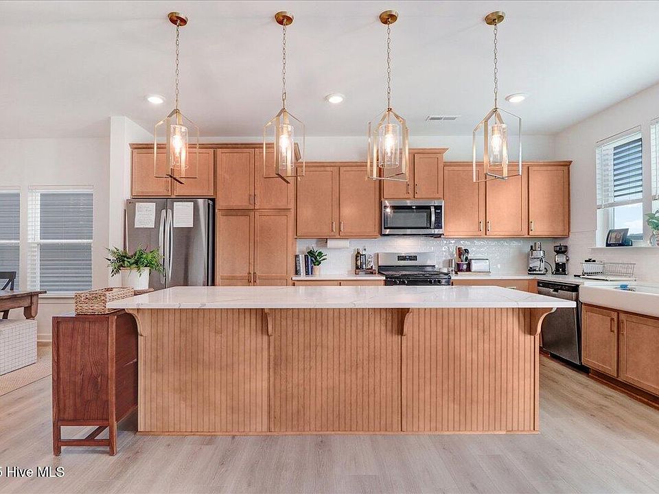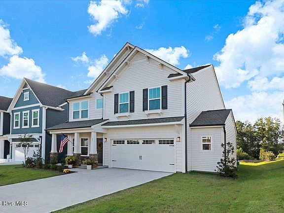 MOVE-IN Ready! Beautifully designed 4 bedroom, 2.5 bath home in the heart of Flowers Plantation! The main floor features a bright home office, formal dining room, and an upgraded kitchen with quartz countertops, gas range, farm sink, and beadboard island - perfect for everyday life and entertaining. The open living areas flow seamlessly to a patio overlooking the landscaped yard. Upstairs, the spacious owner's suite boasts a luxurious bath with a rain shower head and designer tile. A flex/loft space offers the perfect spot for a playroom, media area, or home gym. Three additional bedrooms, a full bath, and a convenient laundry room with folding counter complete the second floor. Extra storage is available in the 6x16 garage bump out. Built in 2025, this home comes with the builder's 1-2-10 warranty that conveys, offering peace of mind for years to come. Enjoy access to community walking trails and playgrounds, and a location just minutes to shopping, dining, Hwy 42, and an easy commute to Raleigh.