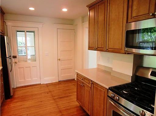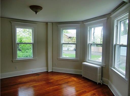 Updated and charming colonial close to schools, shops, library, dining, and everyday conveniences. This move-in-ready home features an inviting covered front porch, high ceilings, and hardwood floors throughout. The sun-filled dining room showcases a classic bay window, while the kitchen offers newer cabinetry, granite countertops, and stainless steel appliances. A large walk-up attic provides extra storage. The expansive, level backyard and two-car garage complete this rental. A true gem in a prime location. Good credit and references required.
