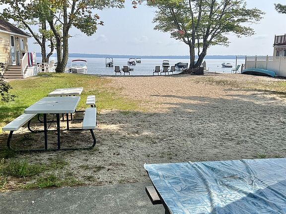 Large sandy beachSerene viewsBeautiful sebago lake beachfrontAmple outdoor seatingCozy and inviting space
