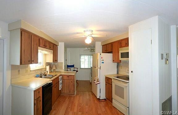 Spacious 2BR, 2BA manufactured home on an extra large lot and half in a community with no fees or restrictions, you own the land and optional membership w/Gulf access boat ramp, pool & more! Huge 30 ft. living room w/Parquet flooring. Spacious 15 ft. kitchen w/lots of cabinet space & wood laminate flooring. Wonderful 20 ft. sunroom w/Plexiglas windows. 15 ft. screened lanai &- huge shed. 28 ft. carport, perfect for your boat. New septic system in 2012. New dusctless a/c in 2011. Aluminum roof in 2005.