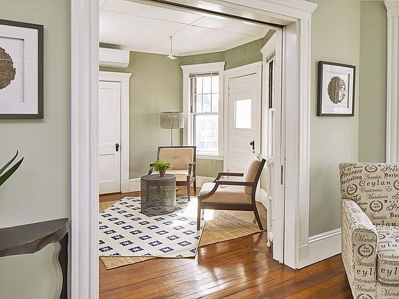 Well located on a tree-lined side street. Turn of the century 2nd floor unit offers abundant light, wood floors, 9 foot ceilings, bay windows, fireplace, old-world details and many modern updates. 2005 kitchen with granite counters, breakfast bar and stainless appliances, opens to dining area with built-in hutch. Bathroom and 2nd bath with many updates. Four good sized bedrooms each with closets systems. Tree top front porch off of family room. The unit comes with one long parking space that fits two small to medium sized cars. Basement laundry. Ample private storage in basement and attic. Unit is heated by common heating system and has 2 mini-split HVAC systems. Electric solar panels on roof can eliminate your electric bill! Common garden area and rear patio. Located 2-3 blocks from Brookline Hills MBTA stop, Brookline Village, Brookline High, Pierce School and much more. A rare opportunity to get 4 bedrooms in this location. A perfect place to call home.