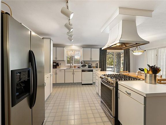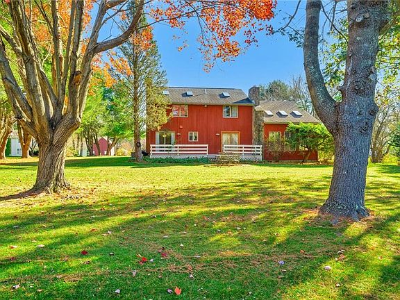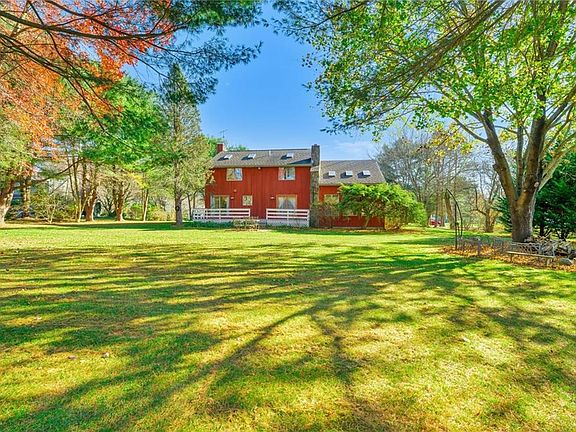Unique Contemporary home on a huge, park-like lot in quaint Greenville, RI! This one-of-a-kind home has many features, beginning with the covered front entrance and inviting foyer. Walking inside you’ll find high ceilings w/ tons of windows & skylights that flood the home w/ natural light. The spacious eat-in kitchen has stainless appliances, gas range w/ hood, + slider to a large composite deck overlooks a huge yard w/ mature trees. The kitchen opens to the living area, with sculpted hardwood floors + bonus room w/ sink + cabinets, perfect for a wet bar or pantry space. Off the kitchen is the formal dining area with room to host plenty of friends and family. The dining area flows into another spacious living room, highlighted by a stunning wood-burning stone fireplace, cathedral ceilings, skylights, and tall windows. A 1st floor bedroom + a half bath finishes off the main level.. Upstairs are 3 spacious bedrooms and a full bathroom w/ tub/shower combo. The massive primary suite has cathedral ceilings & skylights. The primary bathroom features a jacuzzi soaker tub, separate shower, + double sinks. 2 zones of central air makes sure you'll stay cool in the summer months. Efficient gas heat, and convenient Town water + sewer. Downstairs, the basement has laundry + plenty of storage space w/ built in shelving. A two-car attached garage and large driveway offers tons of parking. Centrally located in Greenville/Smithfield, short drive to Putnam Pike/RT 44 and nearby highway access.