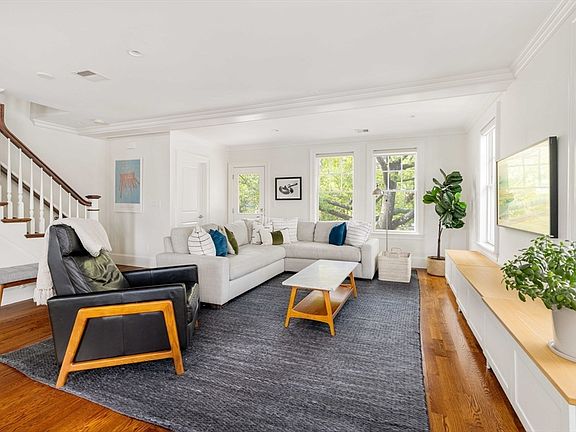 OPEN HOUSES CANCELLED - OFFER ACCEPTED. This exquisite 4-bedroom, 4.5-bathroom home spans 2,403 square feet across the top two floors, offering sophisticated living with tree-top views and an abundance of natural light. Step inside to discover a modern, open floor plan that seamlessly connects the living, dining, and kitchen areas, perfect for both entertaining and everyday living. The gourmet kitchen features high-end appliances and elegant finishes plus a breakfast bar.The first-floor primary suite is a luxurious retreat, complete with an en suite bath and an expansive walk-in closet. The second floor offers 3 additional bedrooms, 2 of which have their own en suite baths, an additional bath and laundry room. Outdoor living is a delight with a front deck and a back patio garden. 2 parking spaces, EV charger,central air and hardwood floors throughout. Moments from the C line of the T and the shops and restaurants of Coolidge Corner and Washington Square