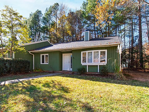 Rare one-story end-unit townhome in a prime South Durham location — one of the most private units in the neighborhood! Tucked away at the end of a quiet street surrounded by a wooded buffer, this charming home offers a bright, inviting layout with fresh paint, low-maintenance laminate flooring, and a spacious living room with bay window and wood-burning fireplace. The living room flows seamlessly into the dining room, making the space perfect for gatherings. The eat-in kitchen features corian countertops, ample cabinet space, built-in microwave and a new stainless-steel Maytag dishwasher (2023). Enjoy the convenience of a full laundry room with extra storage, and relax outdoors on your private back patio with wooded views and a convenient attached storage shed. Major updates include a new roof (November 2024), new water heater (August 2024), and regularly serviced HVAC for peace of mind. With the HOA covering exterior maintenance, landscaping, and more, you'll love the ease of low-maintenance living — just minutes from Southpoint Mall, I-40, Downtown Durham, and RTP.